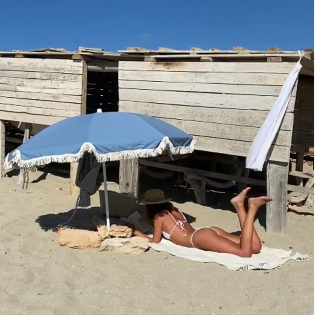 Me encanta nuestra nueva sombrilla de Arena Stories: me trae recuerdos de los veranos con la familia en la playa de San Juan, aunque la que teníamos entonces era más pequeña y azul.. ¡pero los flecos eran los mismos!!.